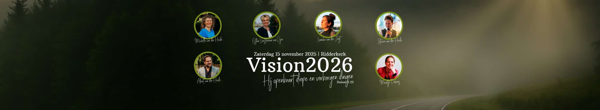 Een nieuw jaar wat voor ons ligt, en wat is er op Gods agenda!? Tijdens het profetische event, Vision2026, nemen we de tijd om te luisteren naar wat de Geest spreekt. Voor jou persoonlijk, maar ook voor ons land, bedrijven, de kerk, de maatschappij en de wereld. Wat is God aan het doen, en hoe kunnen wij daarin meebewegen. Sprekers zijn o.a. Esther Vorsterman van Oijen, Maartje Dekens, Lenneke van der Jagt, Albert en Michelle van der Heide.
