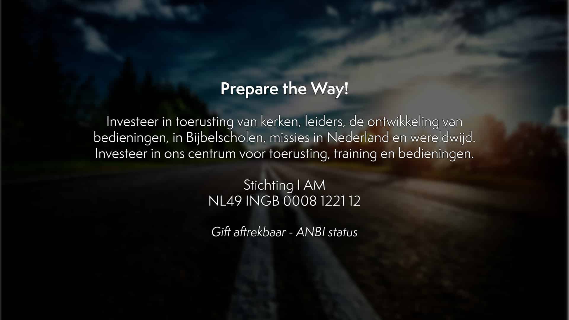 Prepare the Way - Helpt u ons mee? God heeft een geweldige opening gegeven voor een plek waar vanuit bedieningen kunnen opgroeien, ontwikkelen, werken, thuiskomen en uitgezonden worden. Een plaats [...]